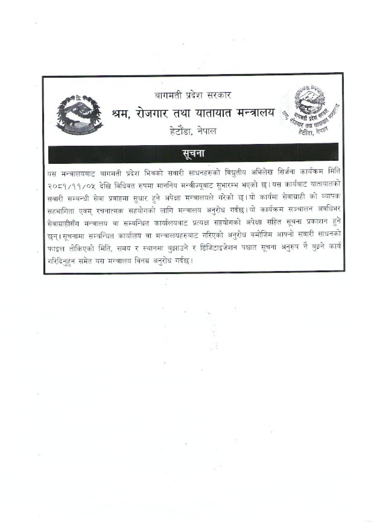 © सर्वाधिकार सुरक्षित श्रम, रोजगार तथा यातायात मन्त्रालय