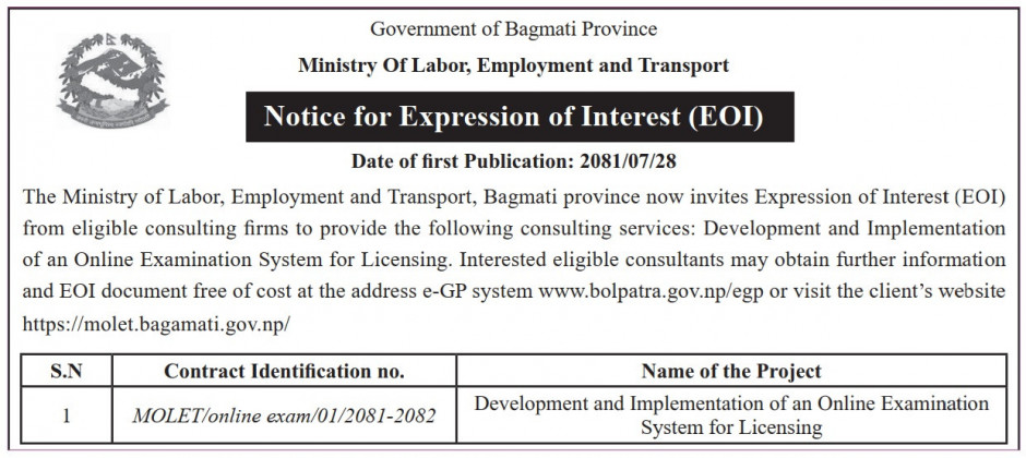 Notice for Expression of Interest (EOI)
